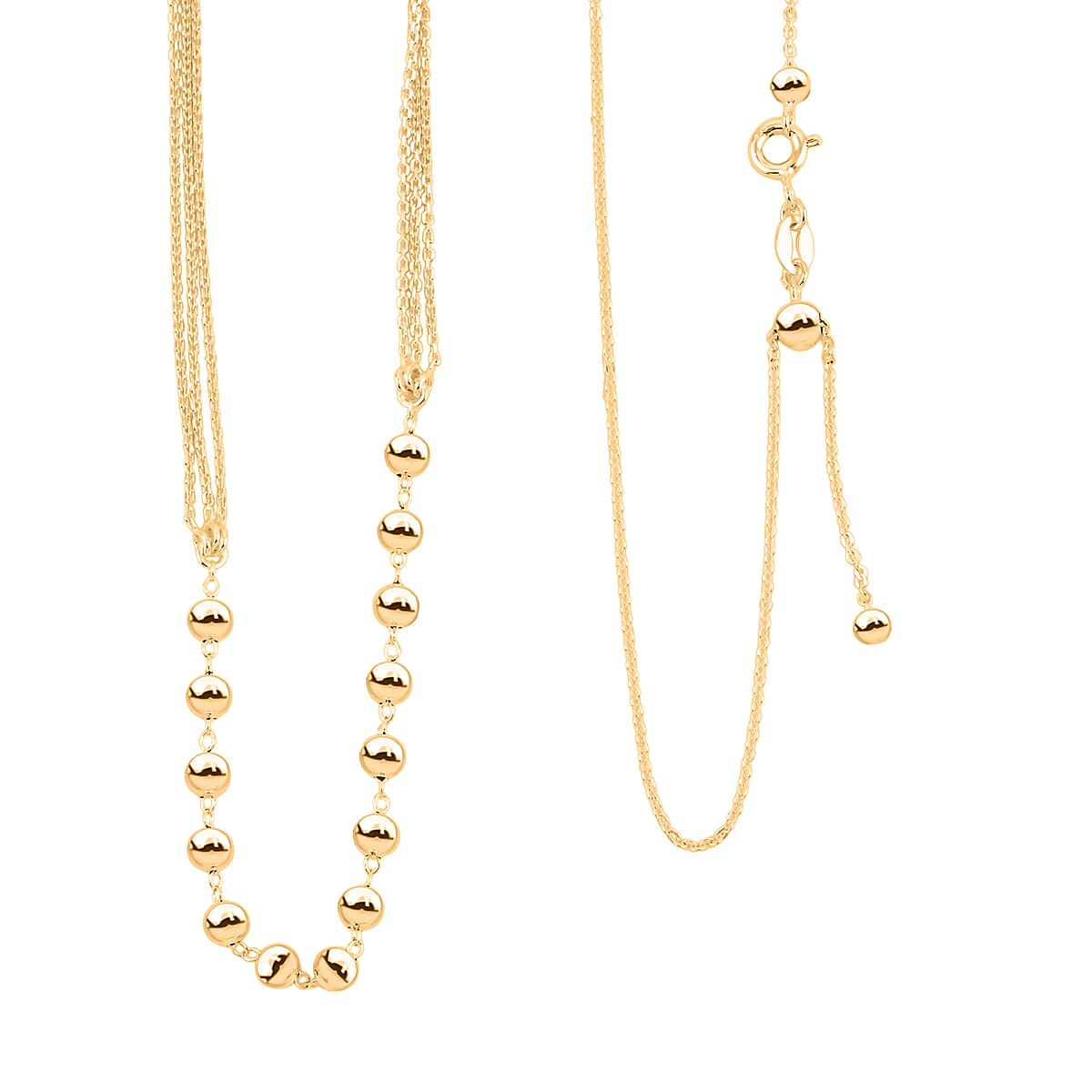 14K Yellow Gold Over Sterling Silver Beaded Link Chain Necklace 24 Inches 4 Grams