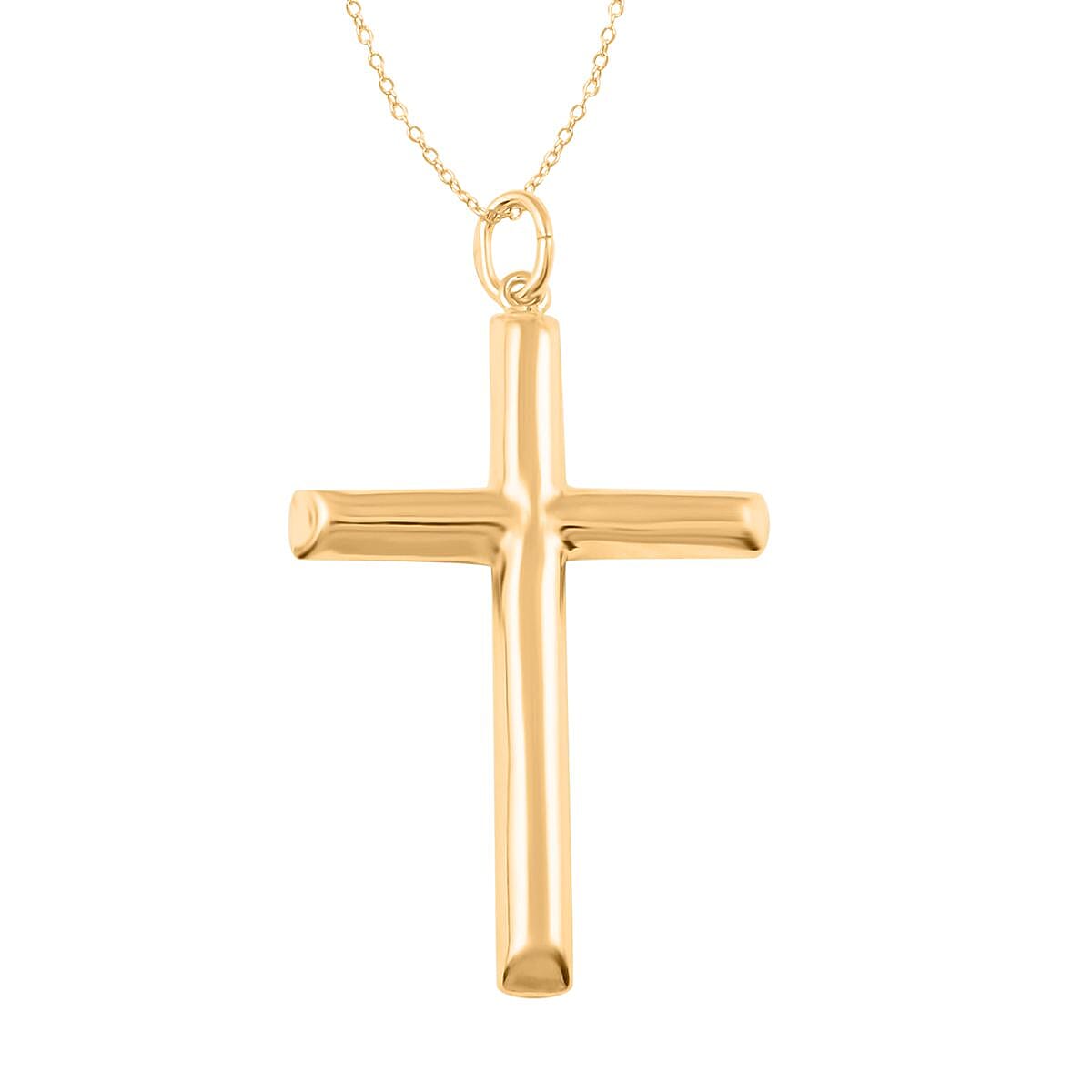 14K Yellow Gold Over Sterling Silver Classic Cross Necklace 18 Inches 2.80 Grams