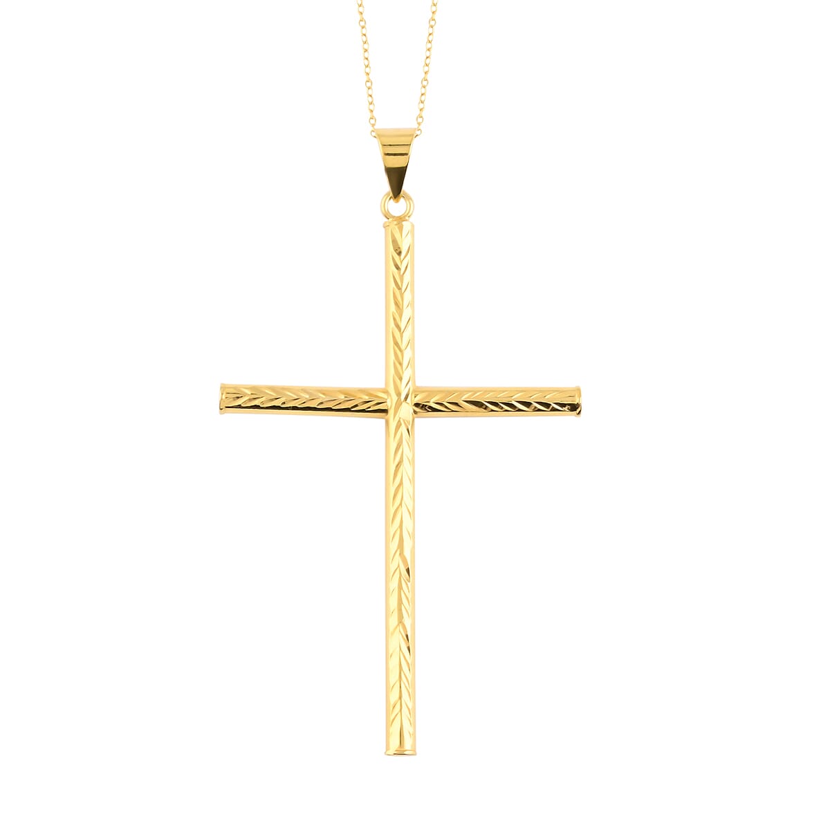 14K Yellow Gold Over Sterling Silver Cross Pendant Necklace 18 Inches 3.30 Grams