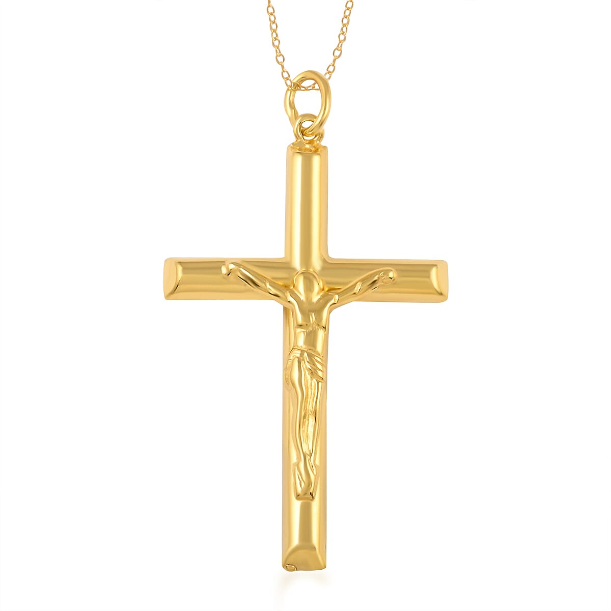 14K Yellow Gold Over Sterling Silver Crucifix Cross Pendant Necklace 18 inches 3 Grams