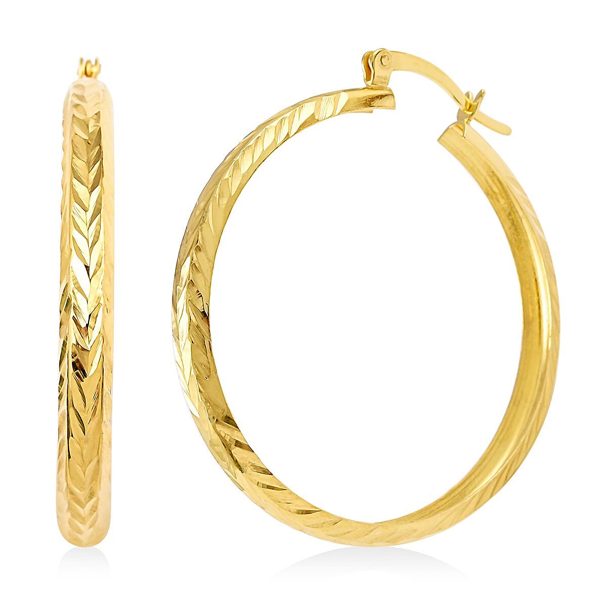 14K Yellow Gold Over Sterling Silver Hammered Hoop Earrings 2.90 Grams
