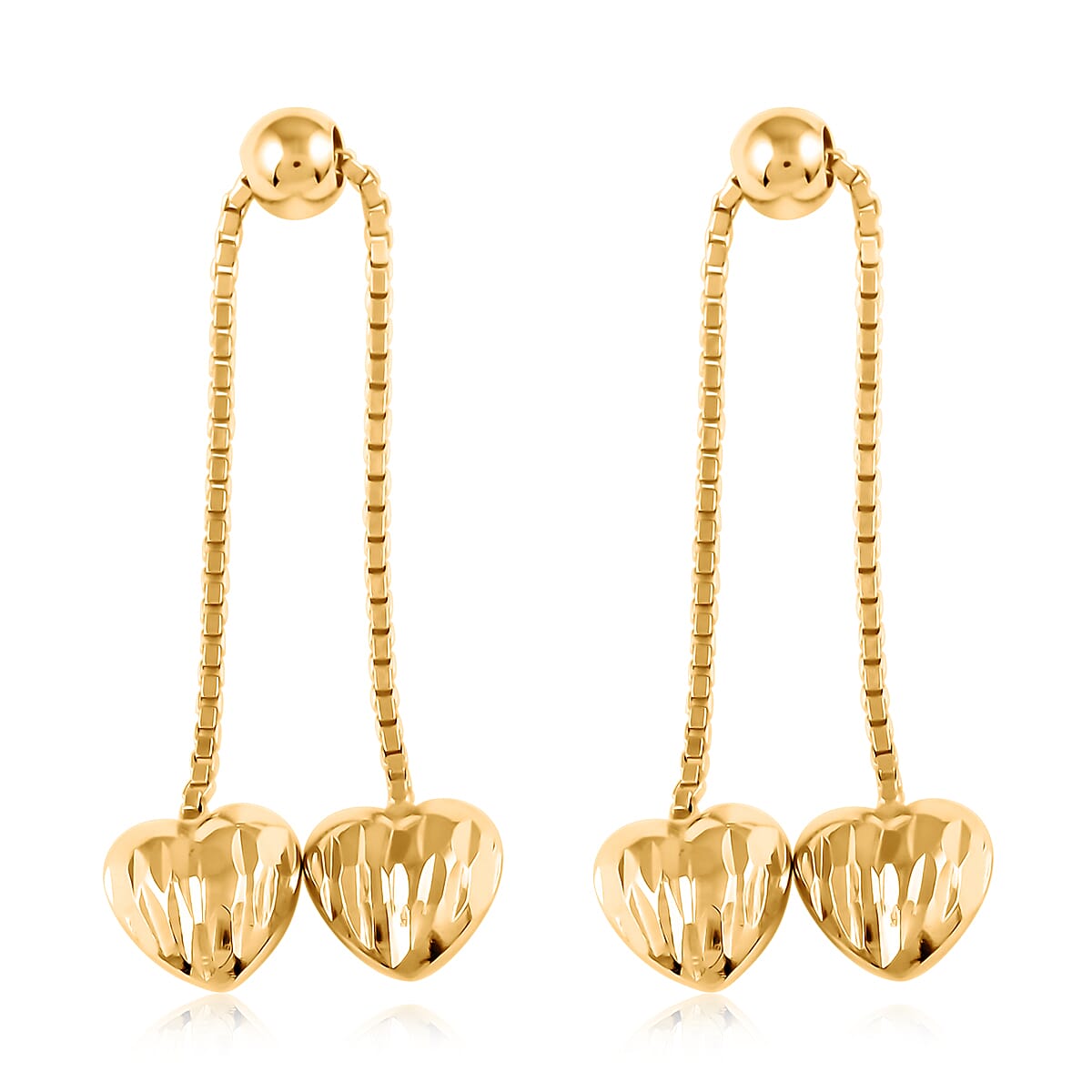 14K Yellow Gold Over Sterling Silver Heart Dangle Earrings with Bolo 2.05 Grams