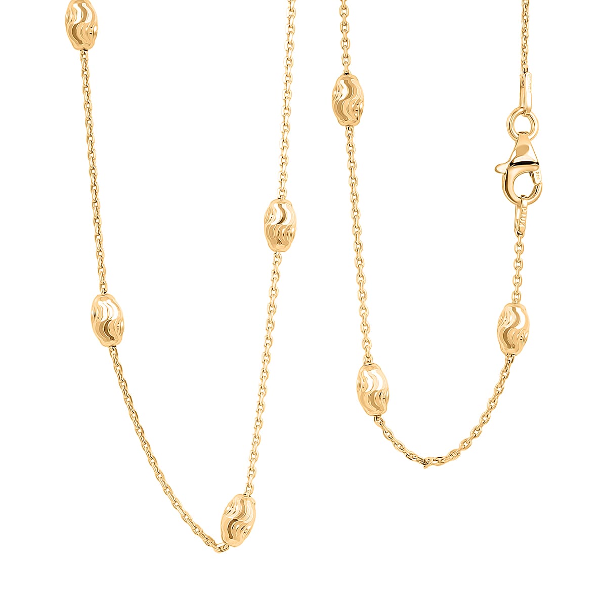 14K Yellow Gold Over Sterling Silver Moon Cut Oval Bead 3mm Chain Necklace 20 Inches 4.40 Grams