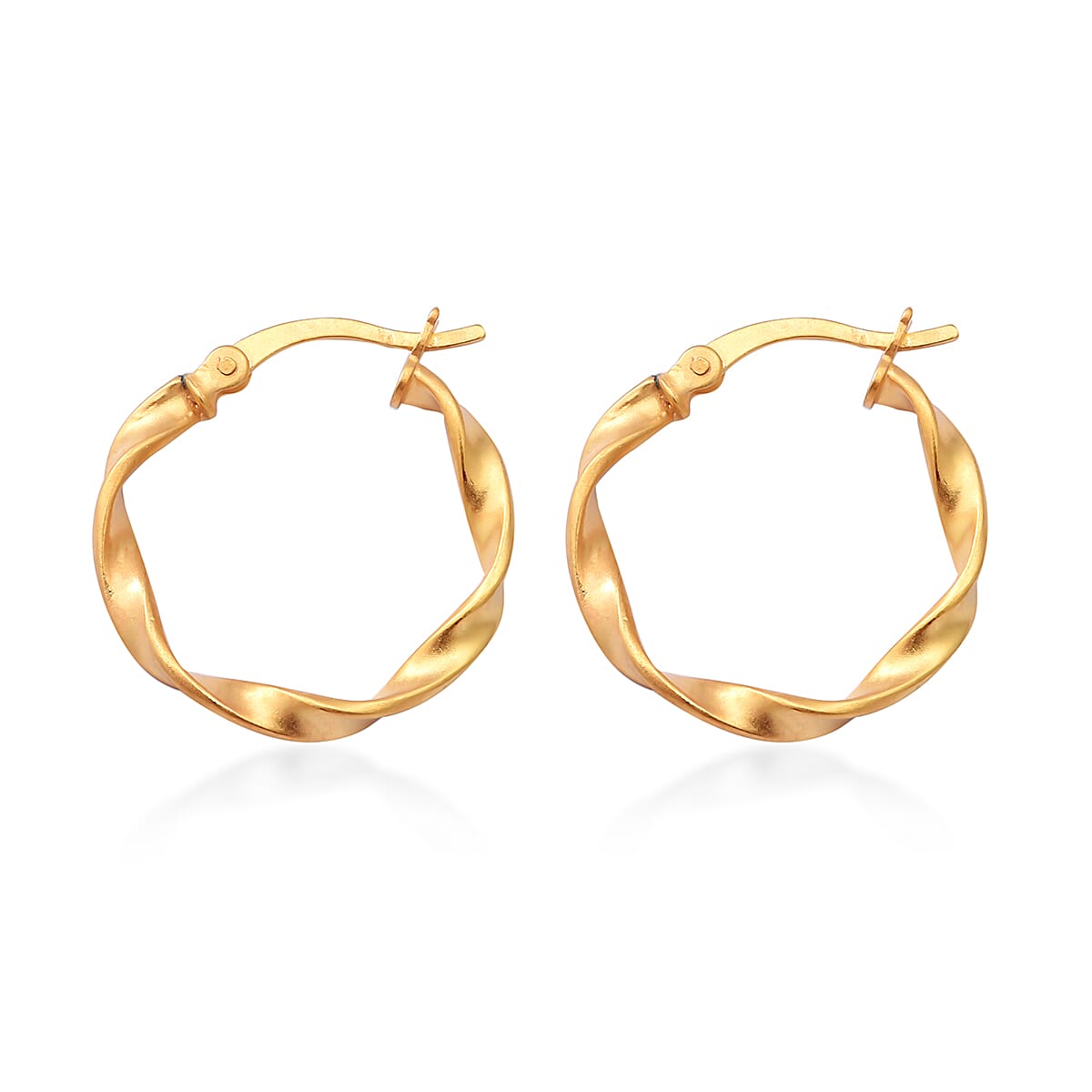 14K Yellow Gold Over Sterling Silver Scalloped Hoop Earrings 1.40 Grams