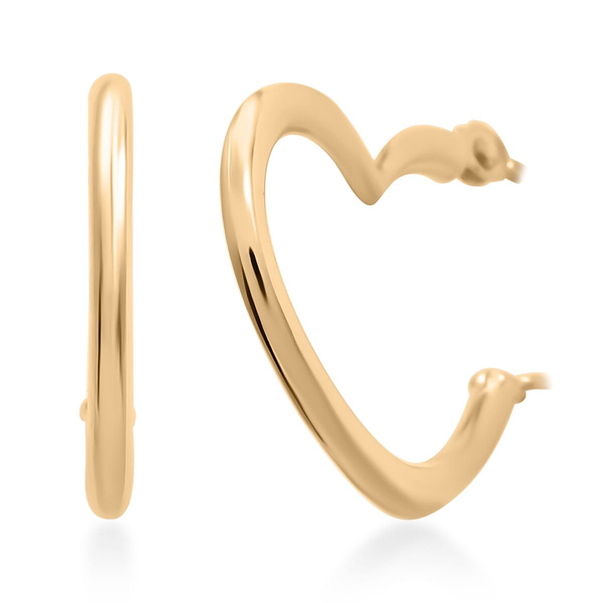 These heart shaped hoop earrings are the perfect addition to any jewelry collection. Crafted in 14K yellow gold, they are both beautiful and durable. The design inspiration of the heart shape make them a great way to express love and affection. The easy-to-wear design makes them a perfect gift for someone special or a treat for yourself.