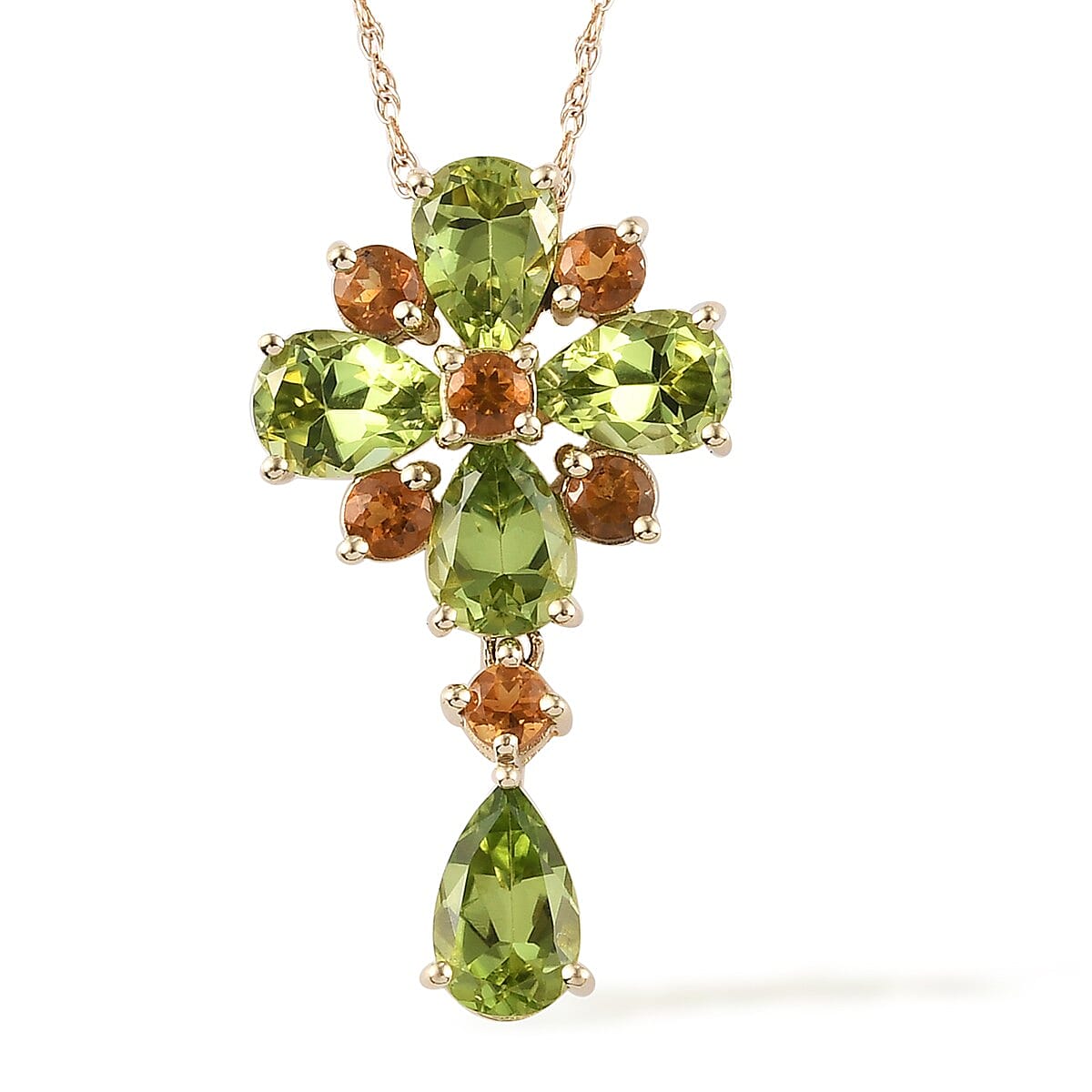 14K Yellow Gold Premium Peridot and Brazilian Citrine Pendant Necklace 20 Inches 5.35 Grams 4.80 ctw