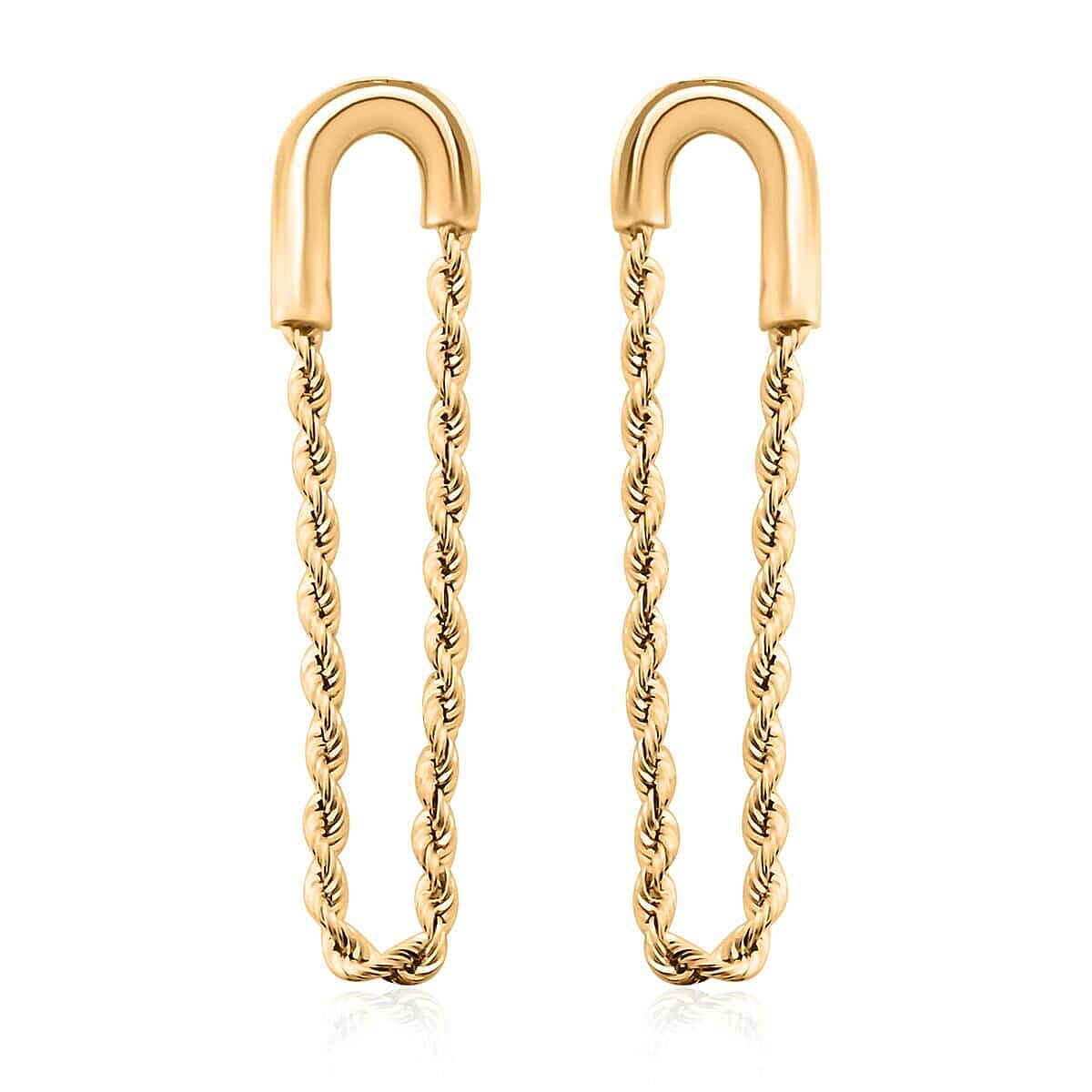 14K Yellow Gold Safety Pin Diamond-Cut Rope Chain Dangling Earrings 1.50 Grams