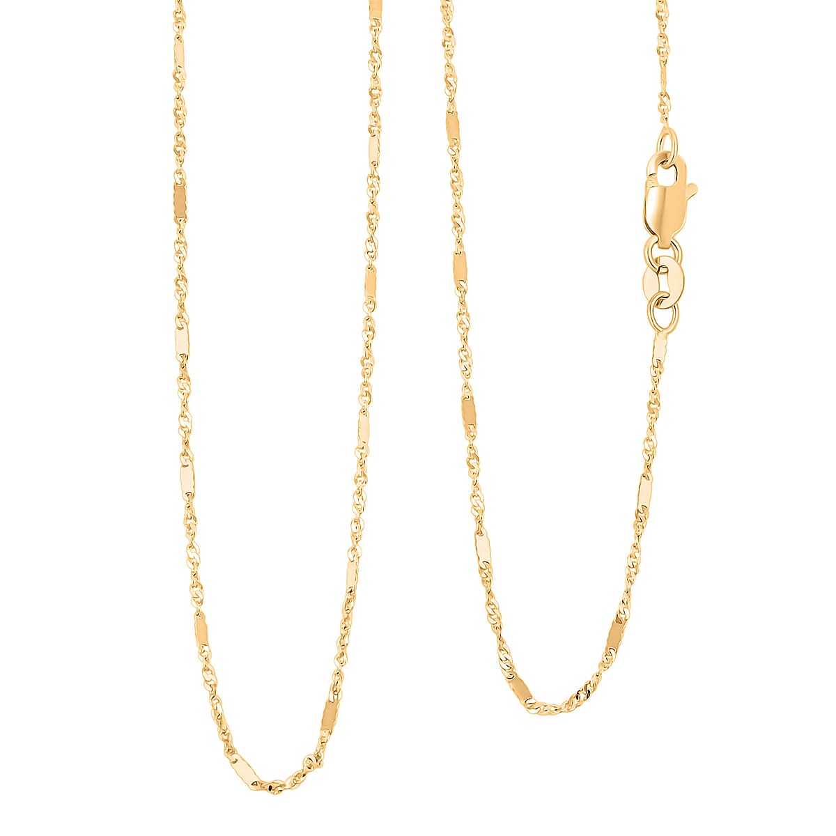 Elevate your look with this Singapore bar chain necklace in 14K yellow gold. This elegant fashion chain necklace features a sleek, twisted design that catches light beautifully. A versatile piece, it enhances both everyday and special occasion outfits with subtle sophistication.