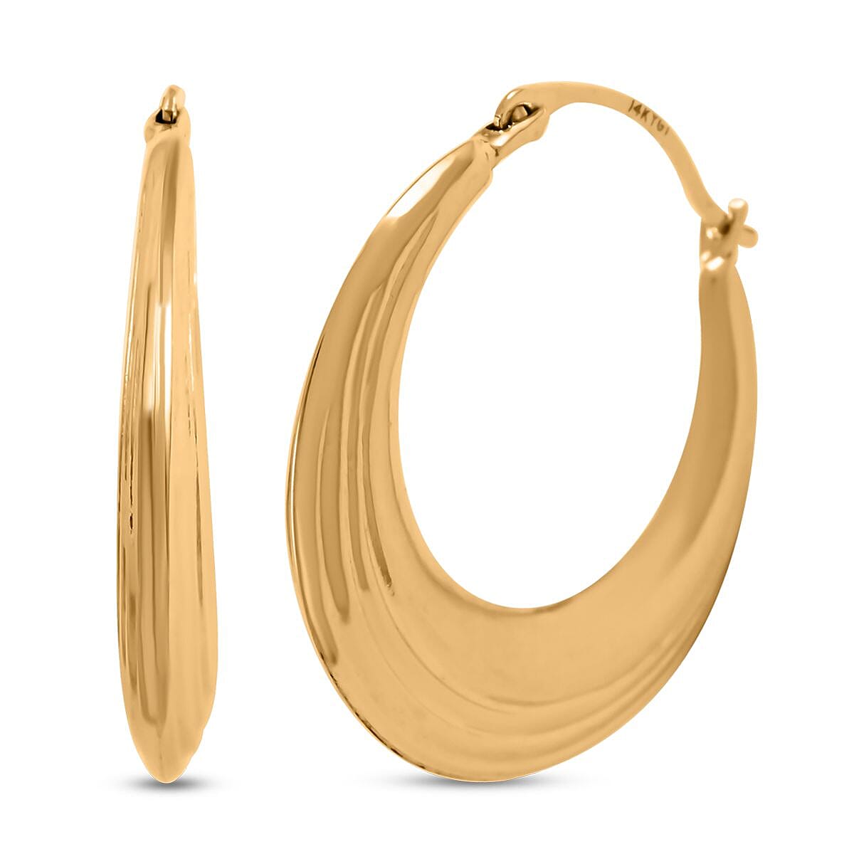 14K Yellow Gold Textured Half Moon Hoop Earrings