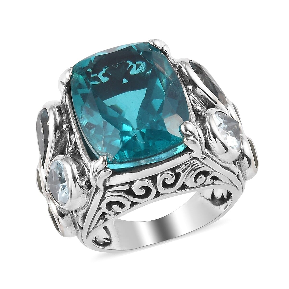 Embellish your appearance by wearing this Capri blue quartz ring. Featuring cushion-shaped super-sized gem, this blue quartz ring adds color to your style. Filled with artisanal intricacy and accented with multi-gemstones, the broad and stylish frame exudes uniqueness. Own this spectacular ring and explore new fashion trends with confidence.