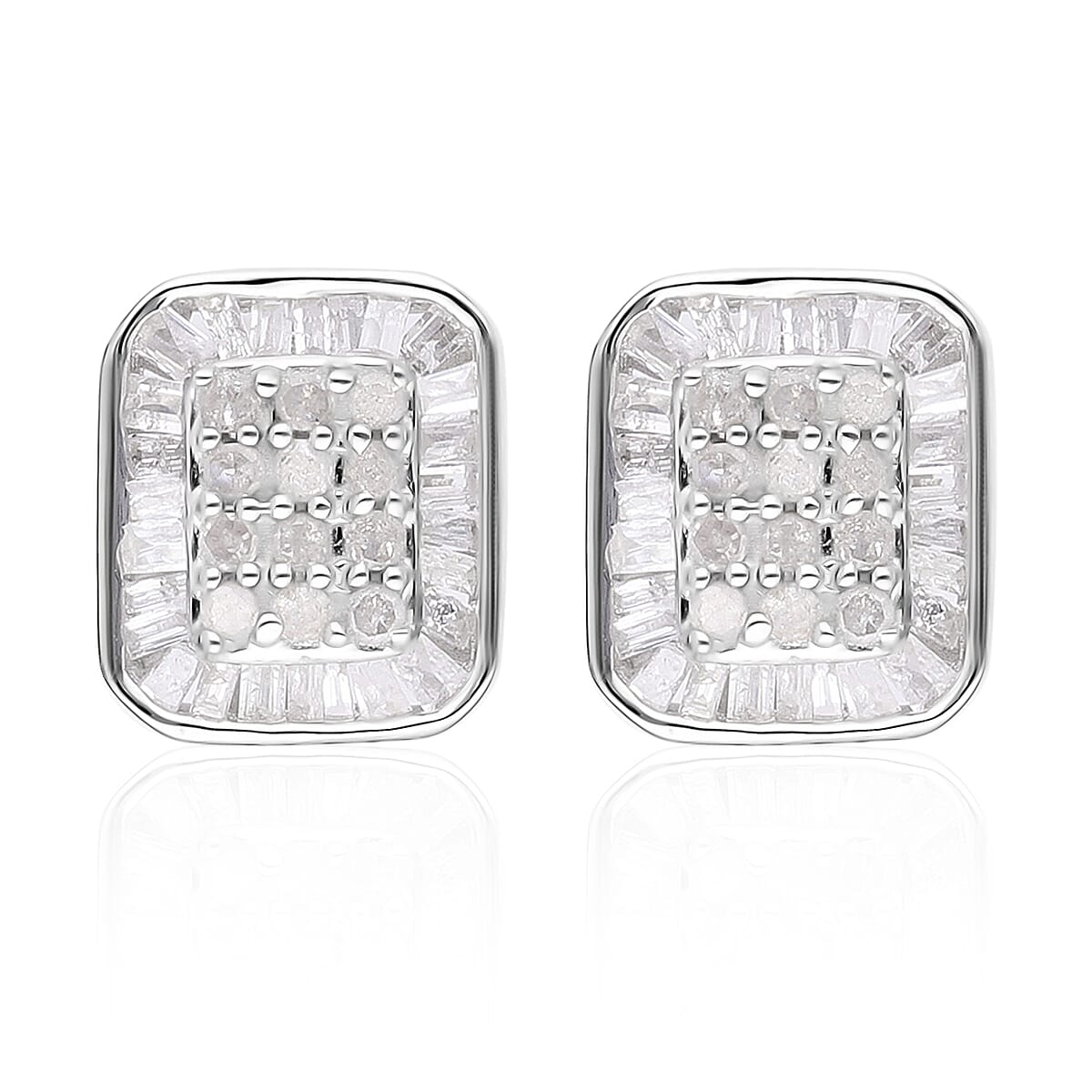 16th Oct TLV Diamond Stud Earrings in Platinum Over Sterling Silver 0.50 ctw