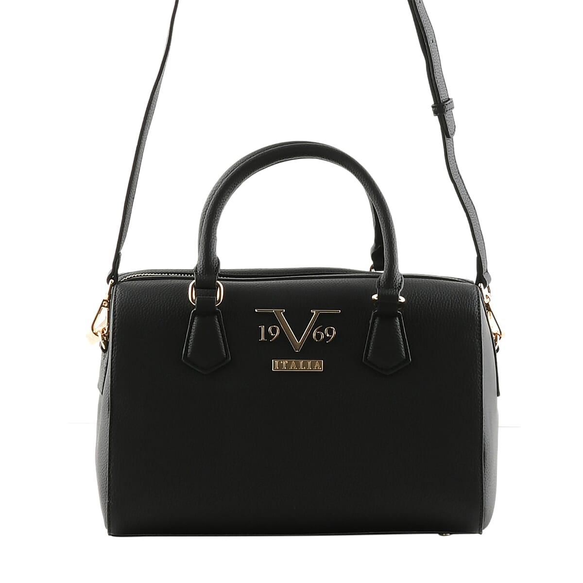 19V69 ITALIA by Alessandro Versace, Black Pebble Texture Faux Leather Tote Bag with Detachable Shoulder Strap