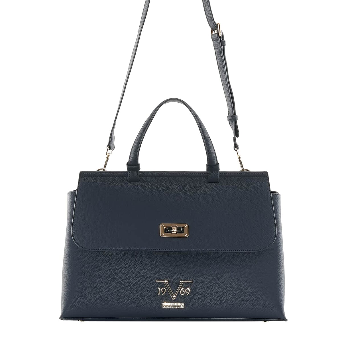 19V69 ITALIA by Alessandro Versace, Navy Pebble Texture Faux Leather Big Tote Bag