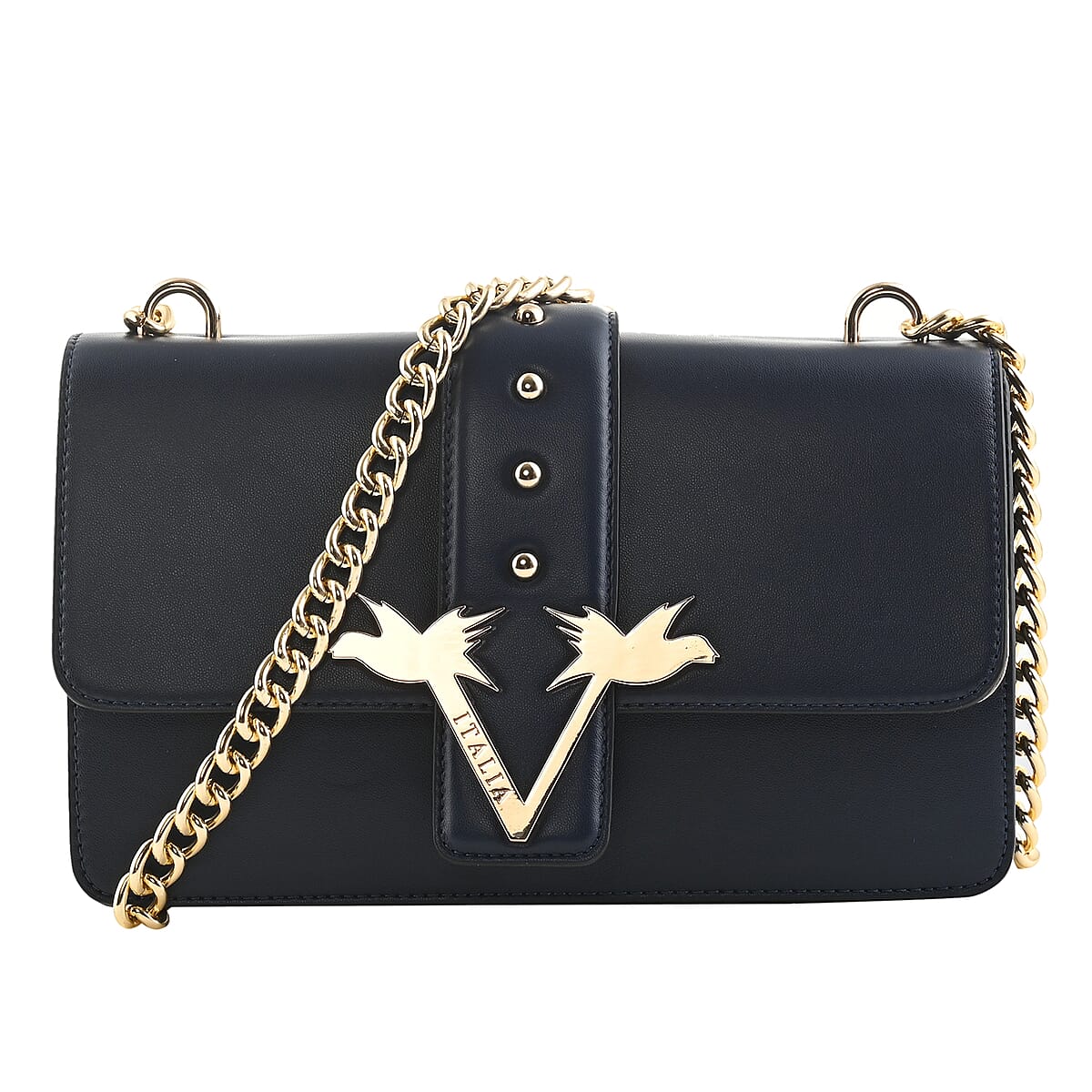 19V69 ITALIA by Alessandro Versace Pebble Texture Faux Leather Crossbody Bag with Magnetic Clasp Closure and Chain Strap - Navy