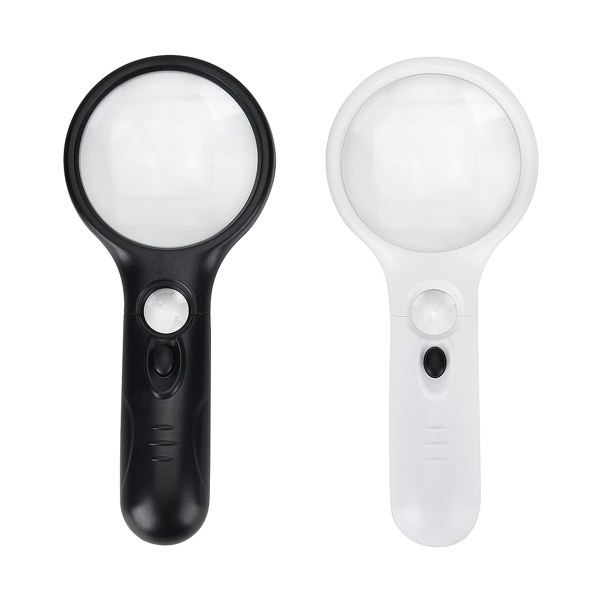2 pcs Certificate CE ROHS Led Magnifier Glass (Black & White) (190x83x28 mm) - Big Len 3X-75mm and Small Len 45X -22mm