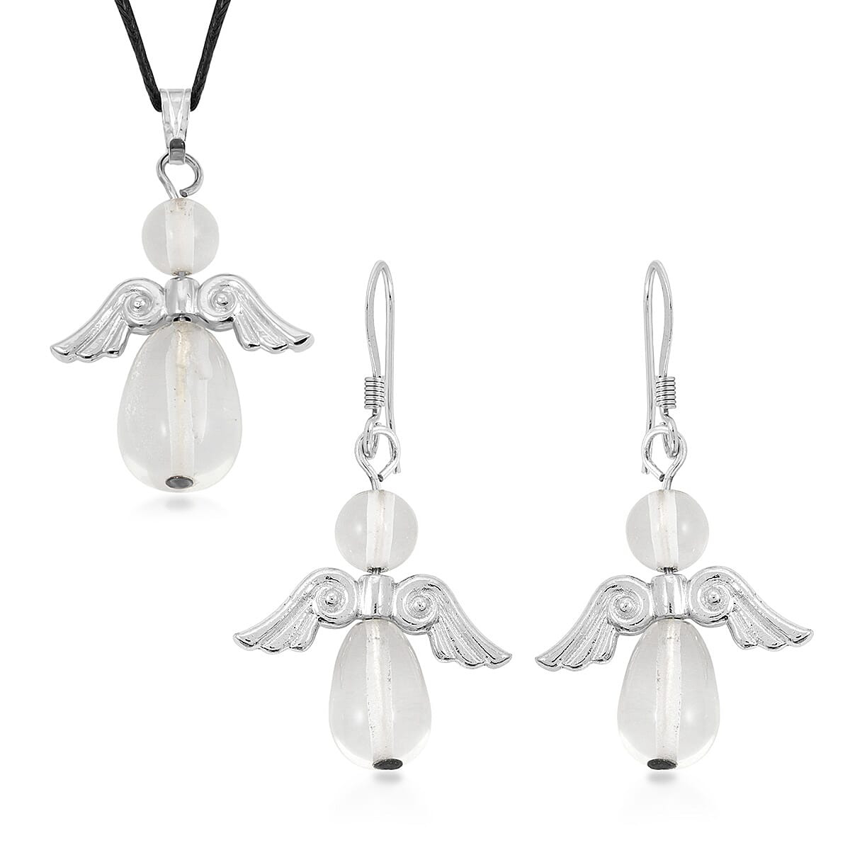 2 Piece Set - Lab Created Crystal Angel Adjustable Black Cord Necklace (14 Inches) and Earrings in Silvertone 27.00 ctw