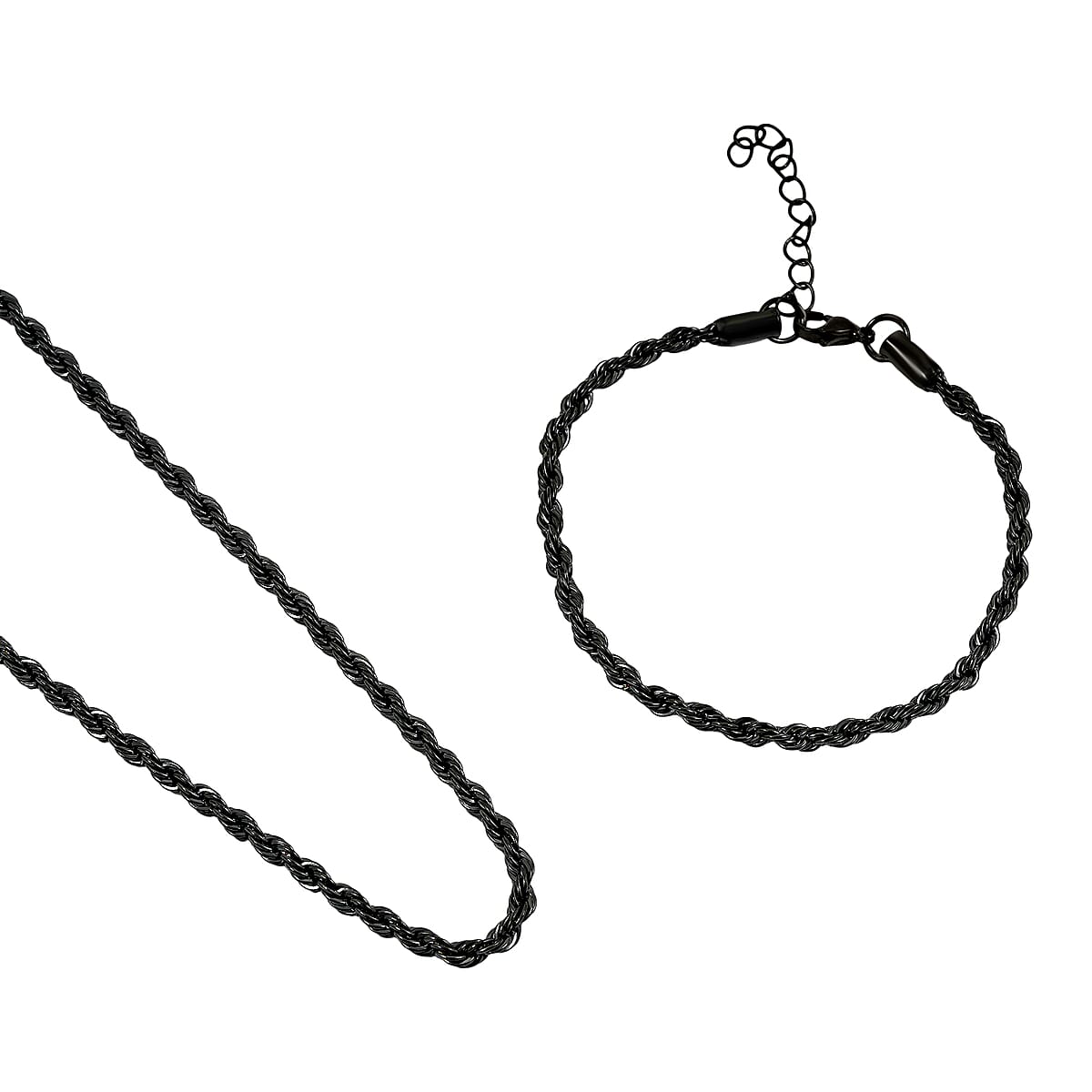 Elevate your collection with this rope chain bracelet and necklace set in 316L stainless steel. This elegant jewelry set for women features a sleek black ION-plated finish for modern, versatile style. Perfect for layering or solo wear, it adds edgy sophistication and everyday elegance to any outfit.