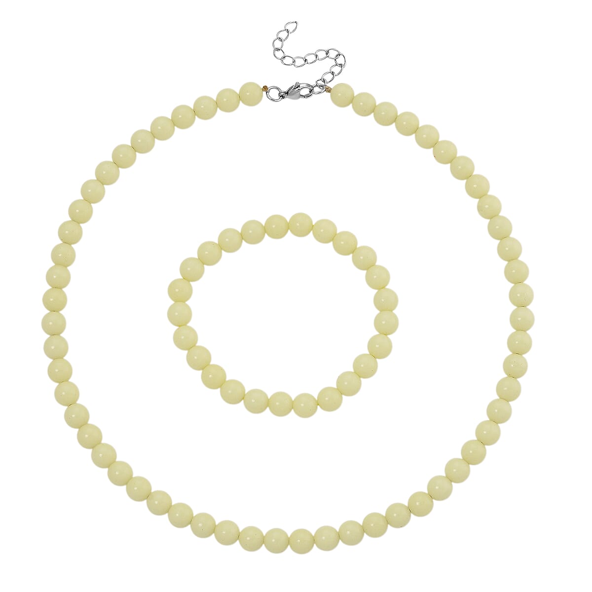 2 Piece Set Yellow Luminous Glowing in Dark Beaded 210.00 ctw Stretch Bracelet (6.5-7In) and Necklace 18-20 Inches in Stainless Steel