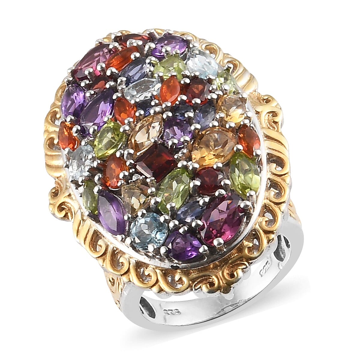 Multi Gemstone Ring in 14K Yellow Gold and Platinum Over Sterling Silver 15 Grams 20.50 ctw