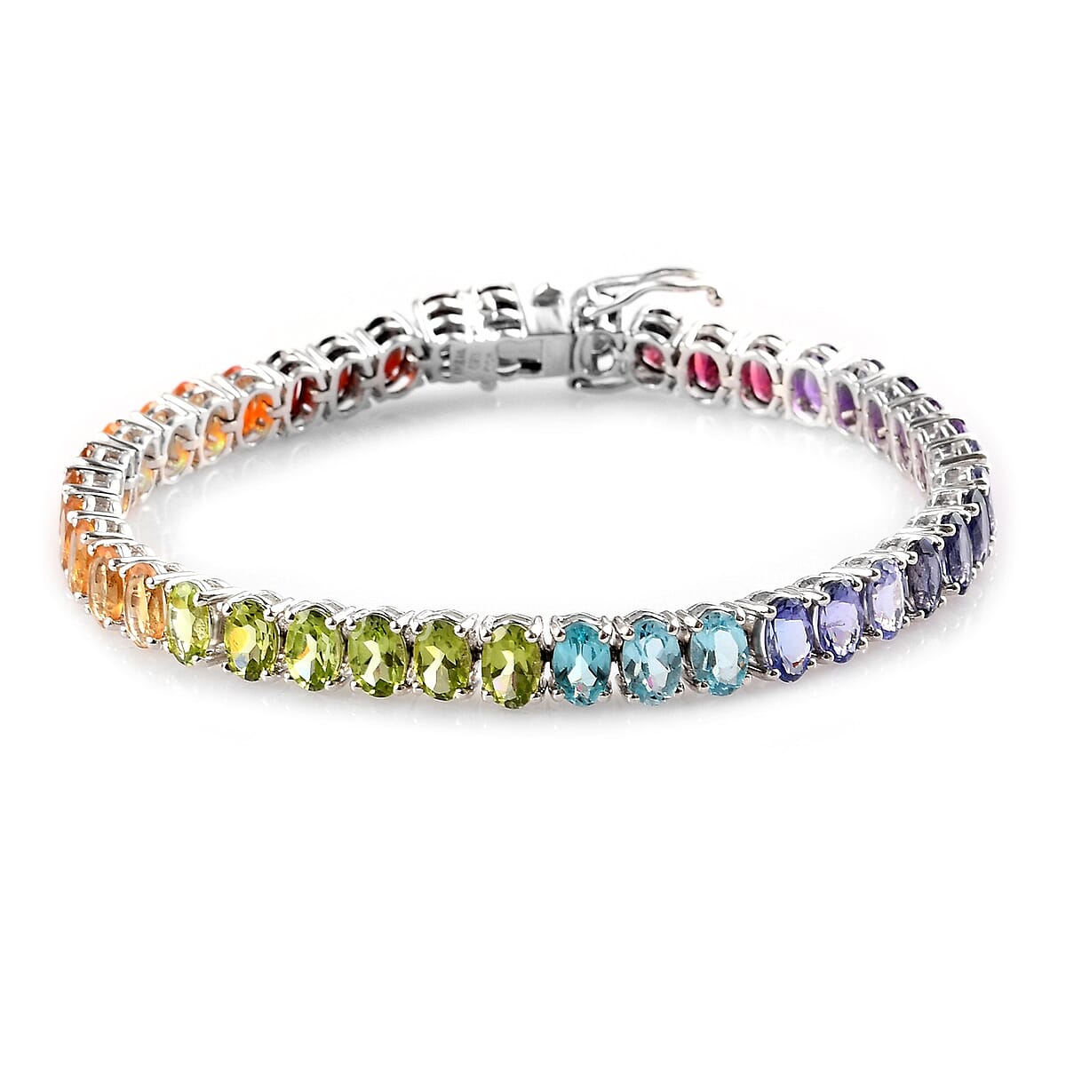 21.30 ctw Multi Gemstone Bracelet in Platinum Over Sterling Silver 15.40 Grams