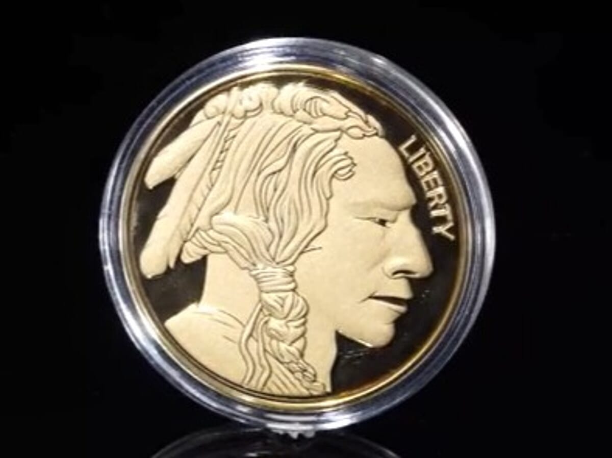 24K Gold American Heritage – Buffalo & Native American Tribute Medallion Embossed Sheet with Box Packaging 50mm (10mg) (Del. in 8-10 Days)