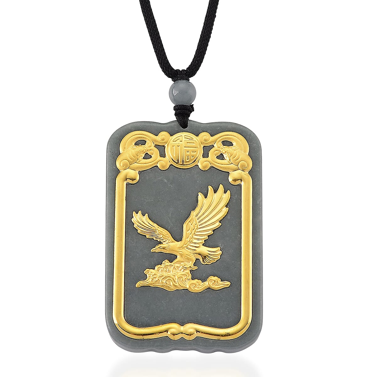 24K Yellow Gold Natural Olmec Jadeite 125.00 ctw Eagle Carved Pendant with Beaded Necklace (28 Inches)