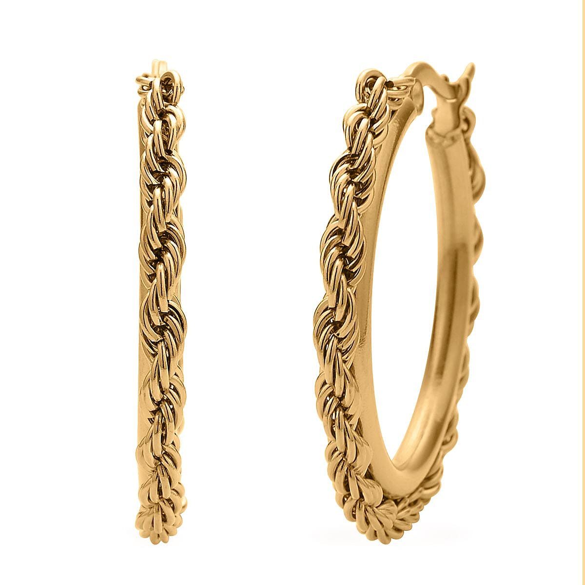 25mm Twisting of Rope Hoop Earrings in ION Plated YG Stainless Steel , Tarnish-Free, Waterproof, Sweat Proof Jewelry
