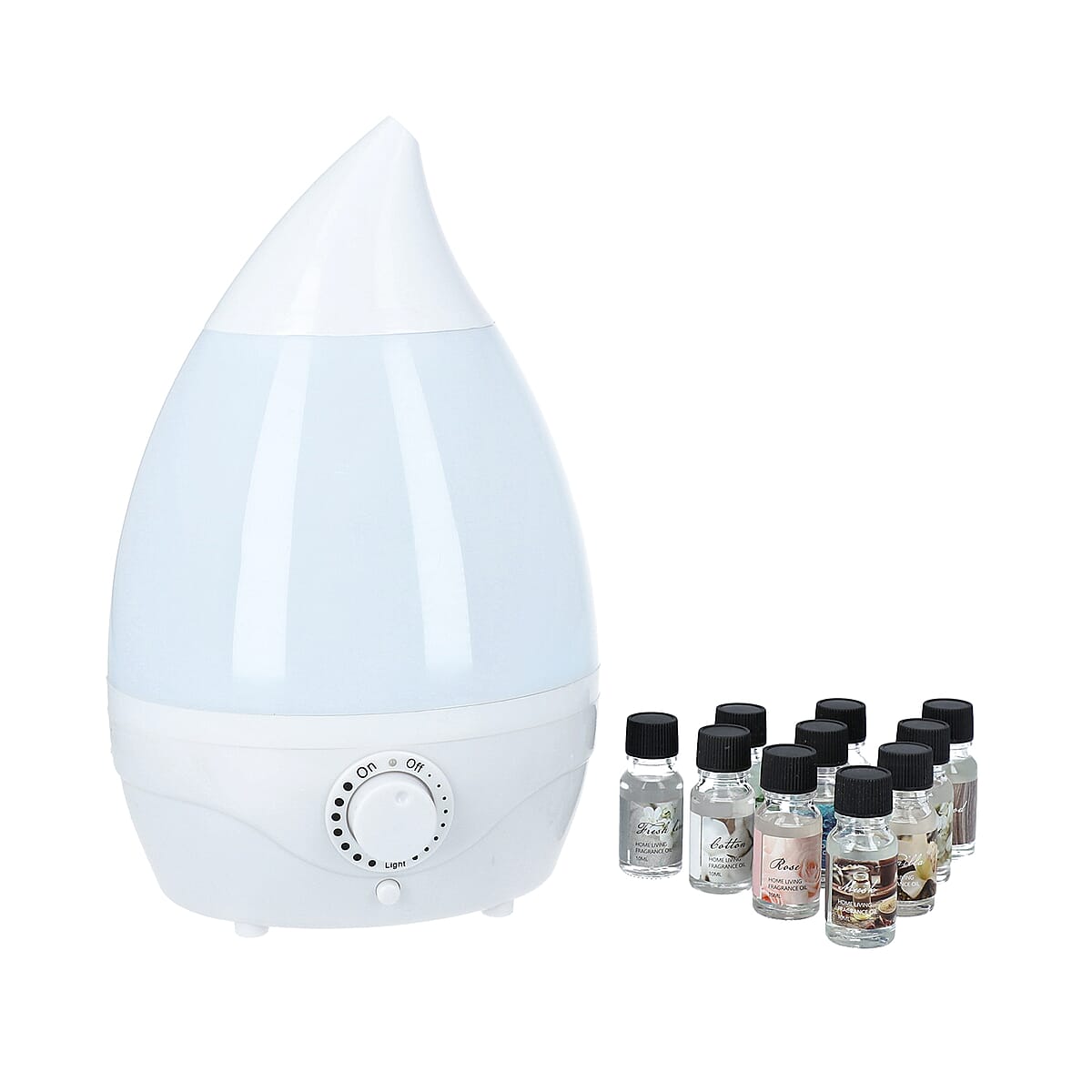 2in1 LED Ultrasound Humidifier Diffuser with 10 Essential Oils (Included: Lavender, Vanilla, Rose, Bluewater, Jasmine, Sandalwood, Musk, Cotton, Fresh Linen, Bamboo)