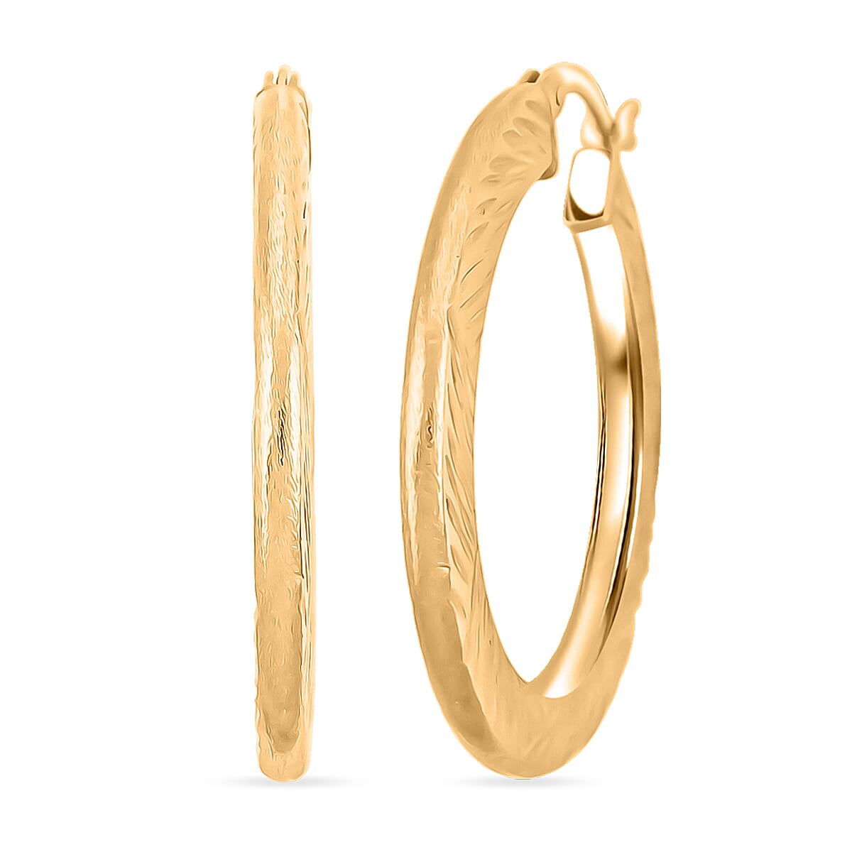 30mm Diamond-cut Hoop Earrings in 14K Yellow Gold Over Sterling Silver 3.10 Grams