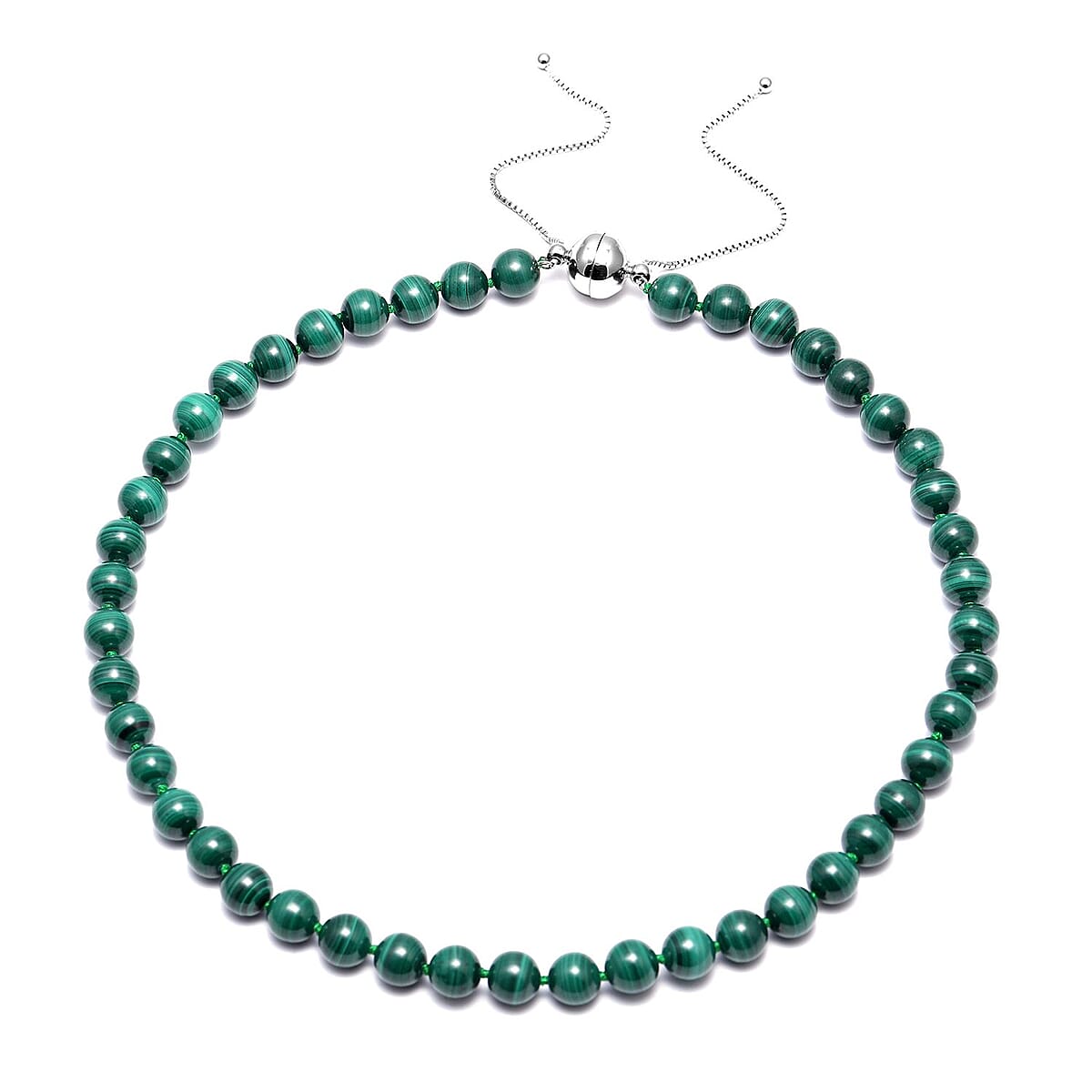Natural Malachite 8-10mm Beaded Necklace 18-22 Inches in Rhodium Over Sterling Silver 324.00 ctw
