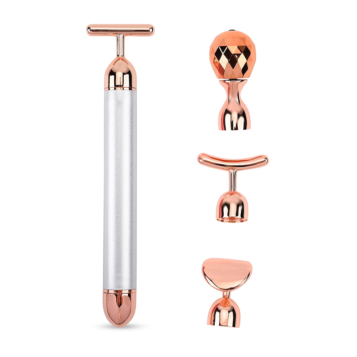 4-in-1 Face Massager Rollers with Four Interchangeable Massage Heads - Silver White, 1xAA Battery Not Including