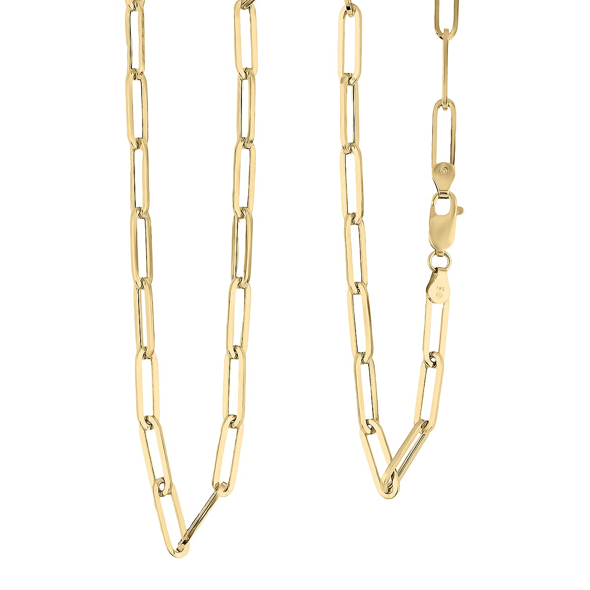 Enhance your style with this paperclip necklace in 14K yellow gold. This elegant fashion chain necklace features sleek, elongated links with modern appeal. Crafted in solid 14K yellow gold, it offers lasting shine and timeless versatility.