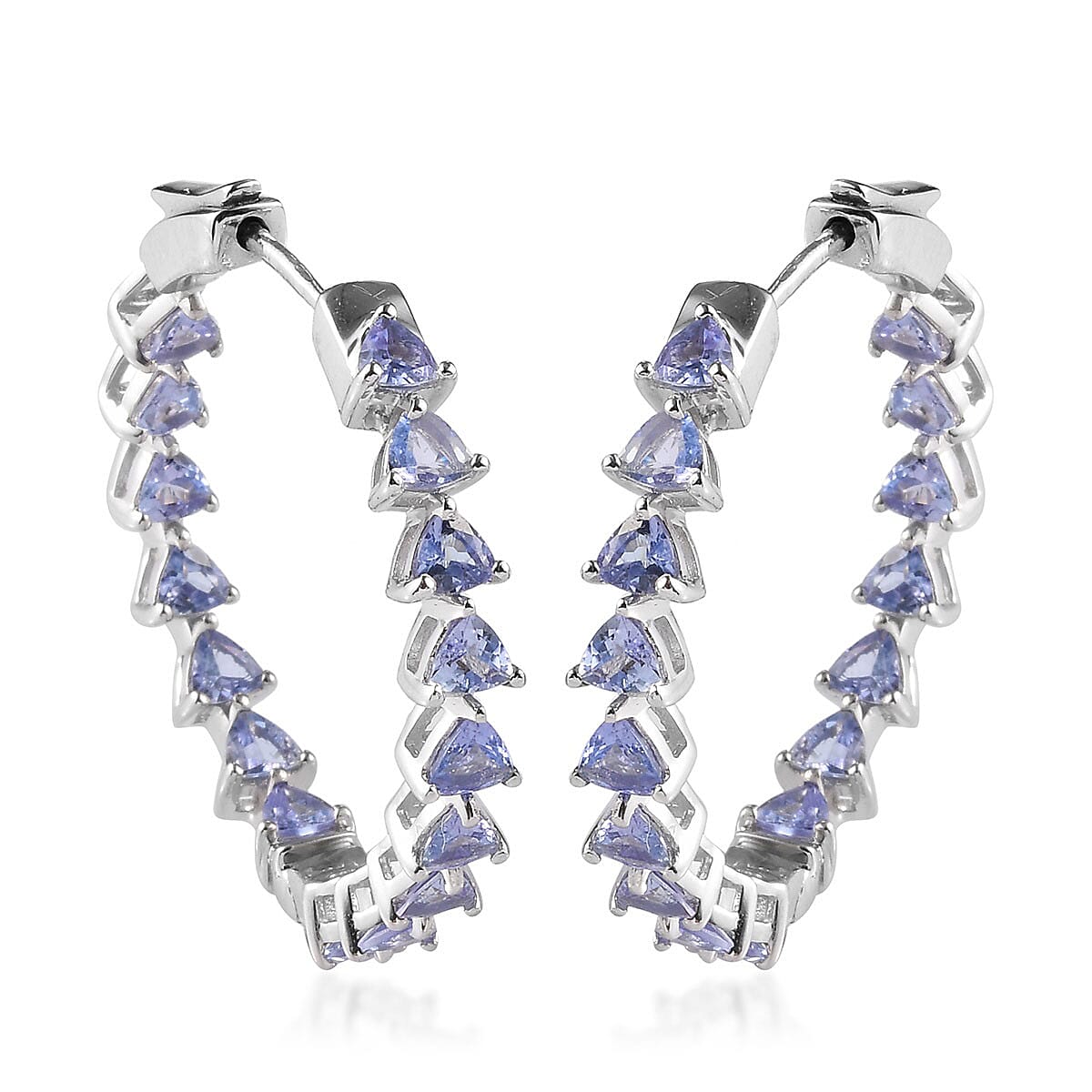 Looking for a breathtaking gift that's sure to leave her speechless? Look no further than our exquisite tanzanite inside out hoop earrings! Crafted with precision and passion, these earrings feature stunning trillion-cut tanzanite gems set in lustrous sterling silver, creating an accessory that's as timeless as it is captivating.