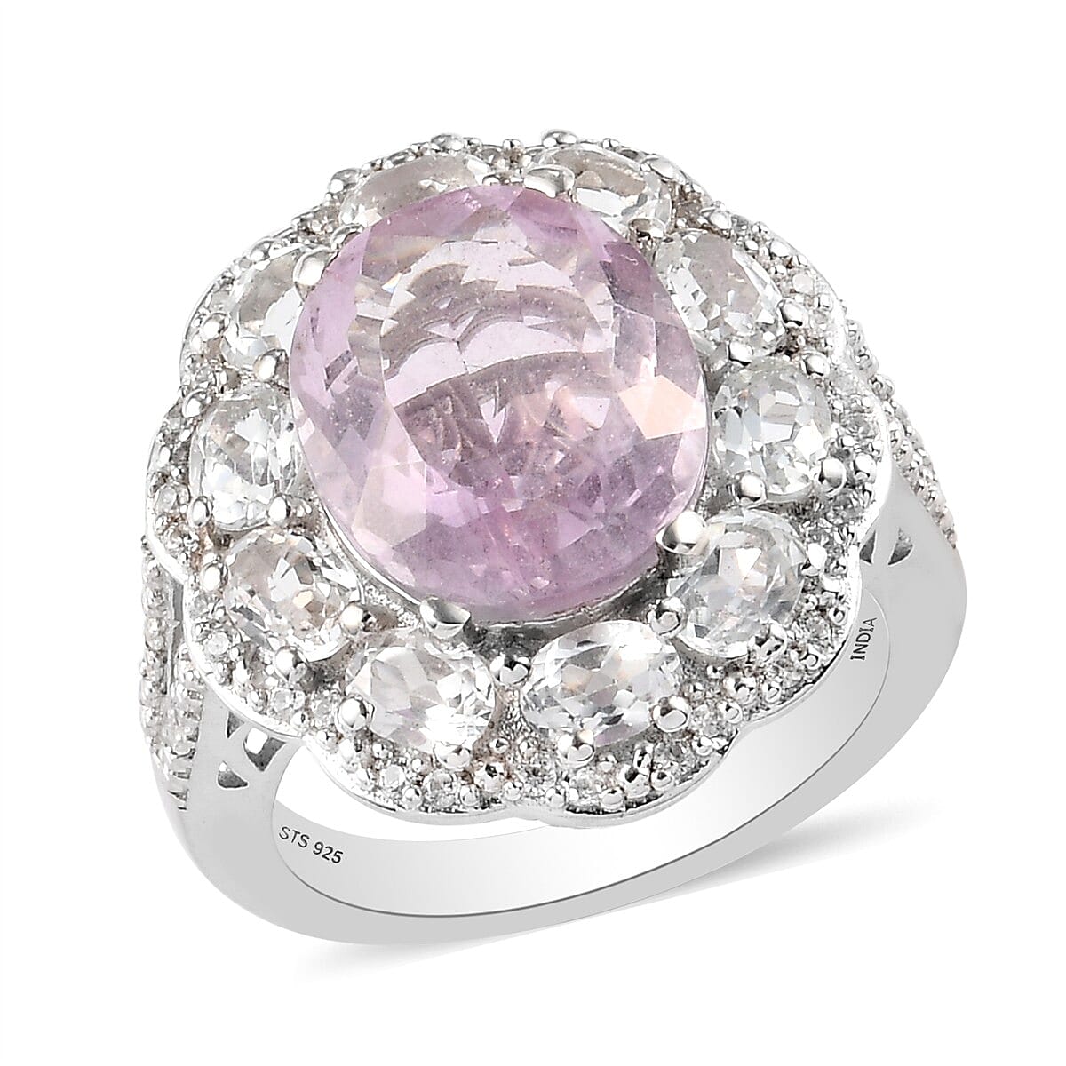 Pink Topaz and White Topaz Ring in Platinum Over Sterling Silver (Size 7.0) 5.75 ctw