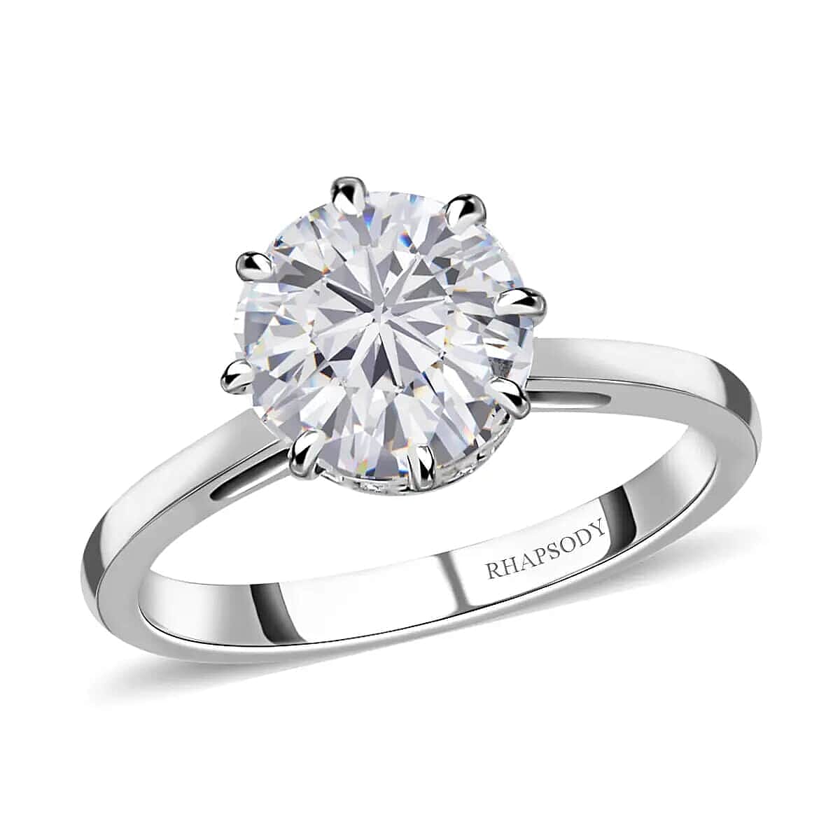 Experience the pinnacle of luxury with our exquisite moissanite solitaire ring. Set in 950 platinum, this women’s ring showcases a brilliant round-shaped moissanite held securely by multiple prongs, symbolizing the importance of strength and resilience. From our coveted Rhapsody Collection, this ring epitomizes timeless elegance and impeccable craftsmanship. Elevate your style and revel in the allure of this extraordinary moissanite ring.