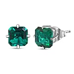 AAA Asscher Cut Luxuriant Lab Grown Emerald 1.80 ctw Solitaire Stud Earrings in 10K White Gold (Del. in 10-12 Days)