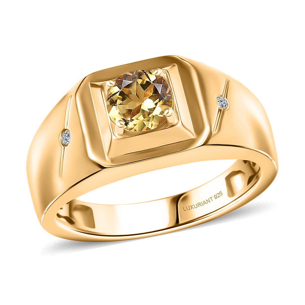 AAA Brazilian Heliodor and G-H SI Luxuriant Lab Grown Diamond 0.80 ctw Art Deco Men's Ring in 18K Vermeil Yellow Gold Over Sterling Silver (Size 13.0)