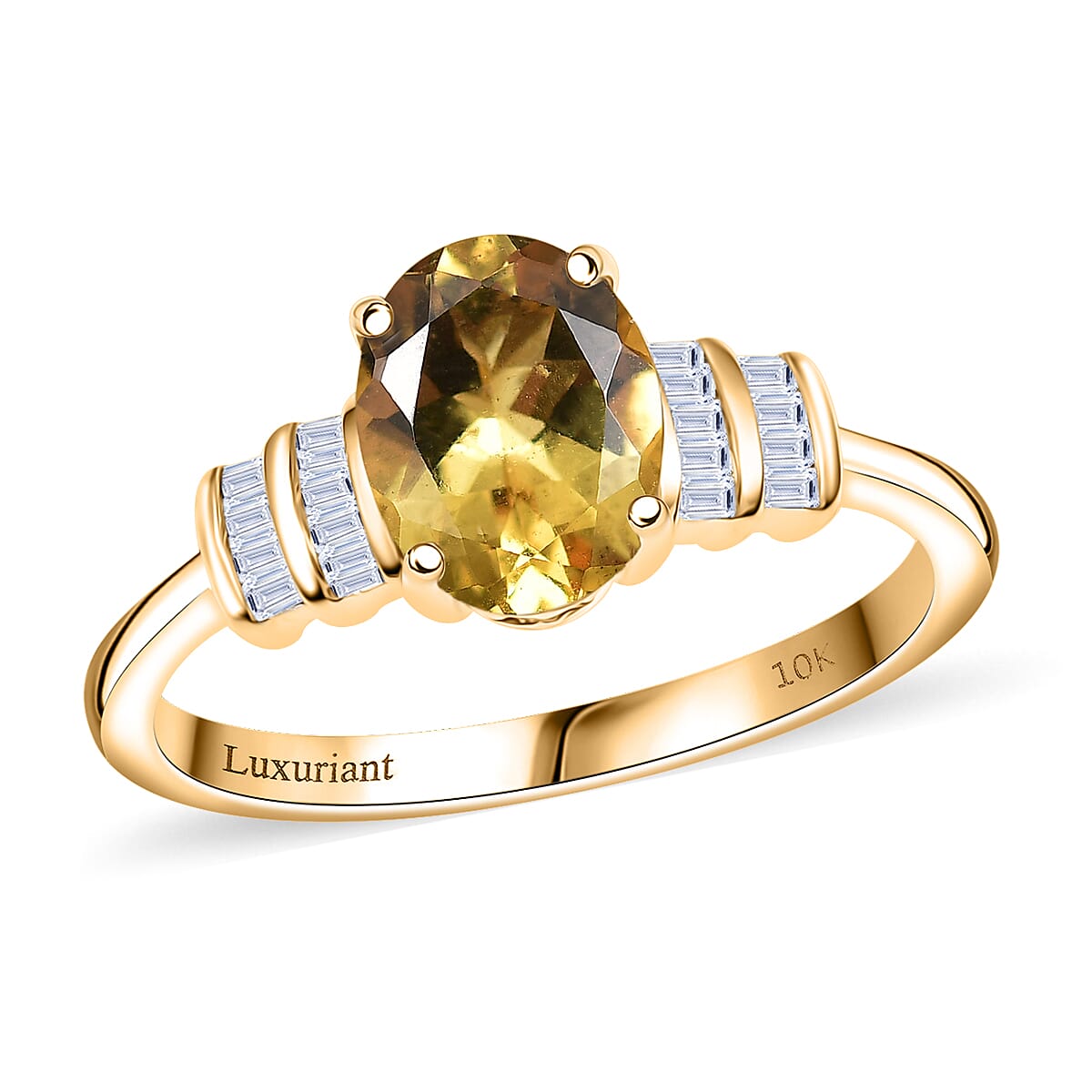 AAA Brazilian Heliodor and Luxuriant Lab Grown Diamond VS 1.80 ctw Empire Gleam Ring in 10K Yellow Gold (Size 8.0)