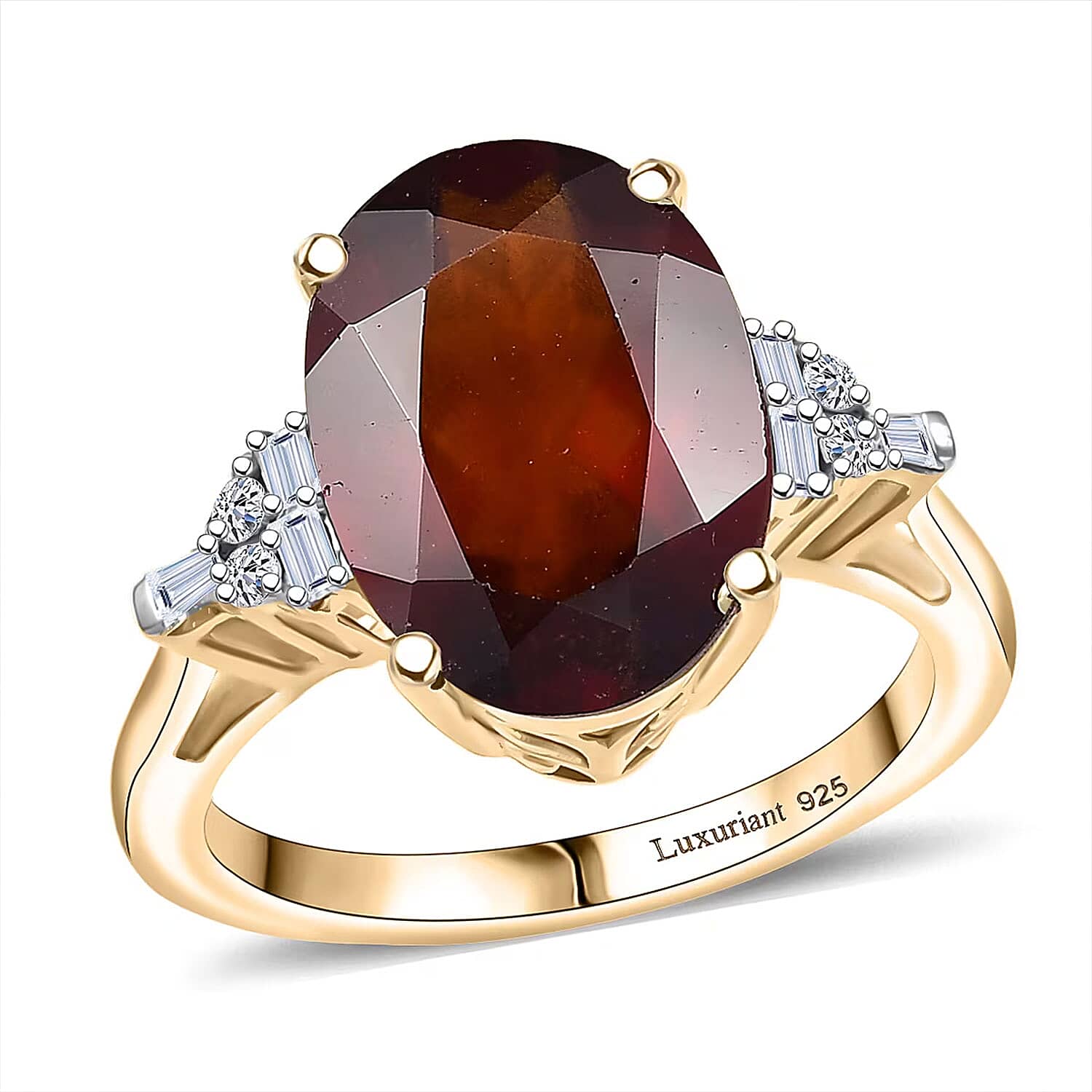 Command attention with this honey garnet ring in sterling silver. The regal design creates an aura of sophistication for special occasions. Your style will shine with this luxurious lab diamond and garnet ring.