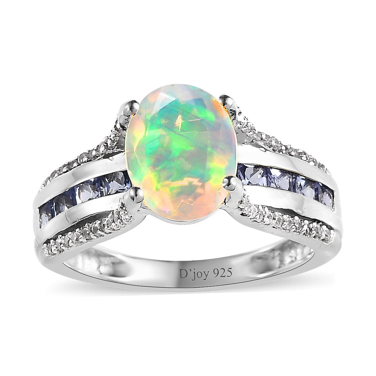 AAA Ethiopian Welo Opal and Multi Gemstone Bridge Ring in Platinum Over Sterling Silver (Size 9.0) 2.00 ctw