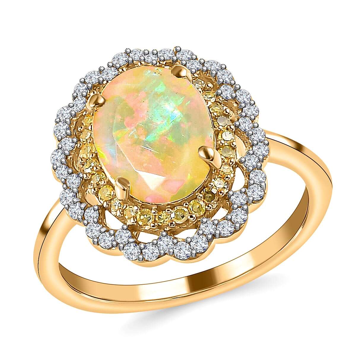 AAA Ethiopian Welo Opal, Natural Yellow and White Diamond (I3) Ring in Vermeil YG Over Sterling Silver 1.46 ctw (Size 10.0) 1.45 ctw