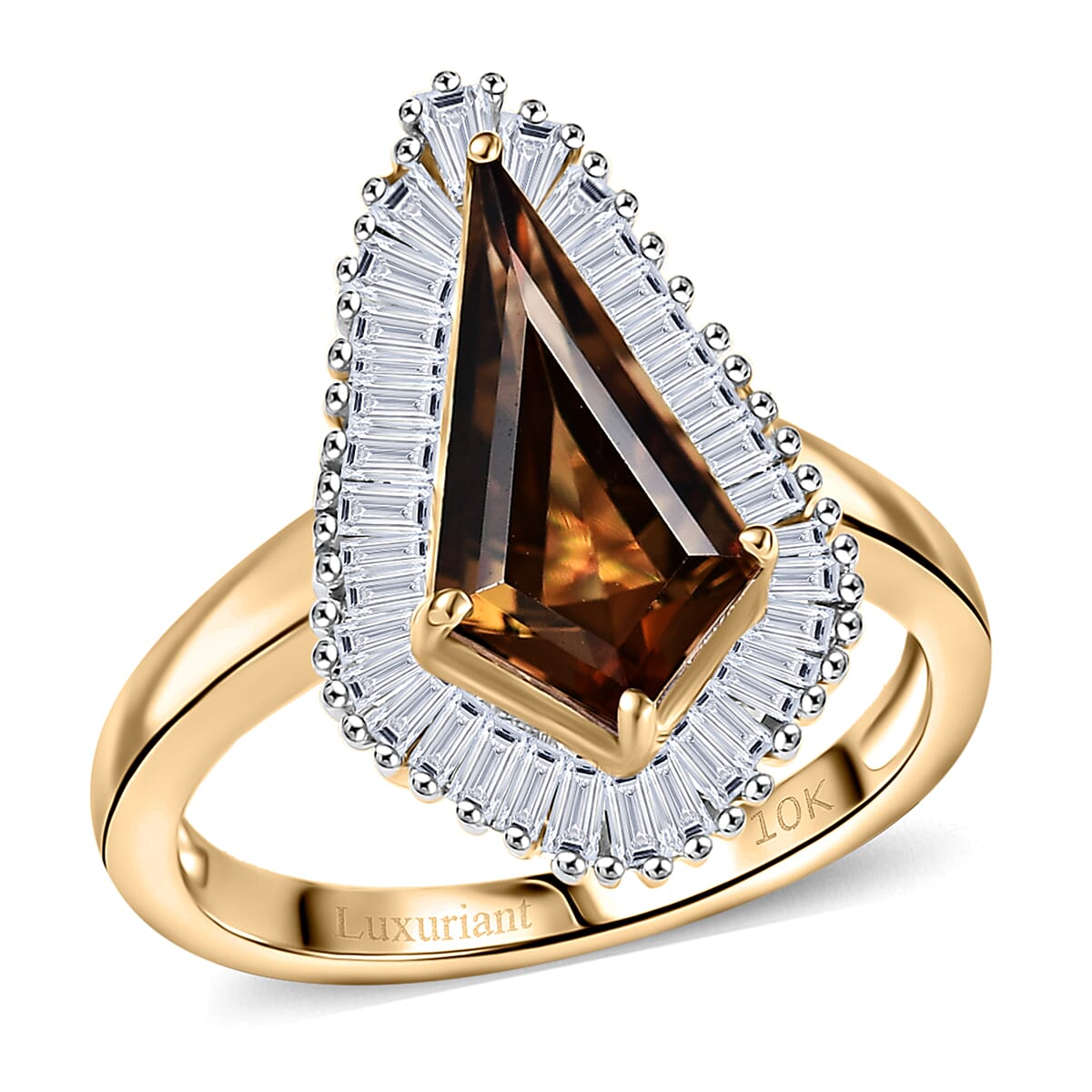 AAA Golden Turkizite and Luxuriant Lab Grown Diamond VS 2.65 ctw Brilliance of Kite Ring in 10K Yellow Gold (Size 8.0)