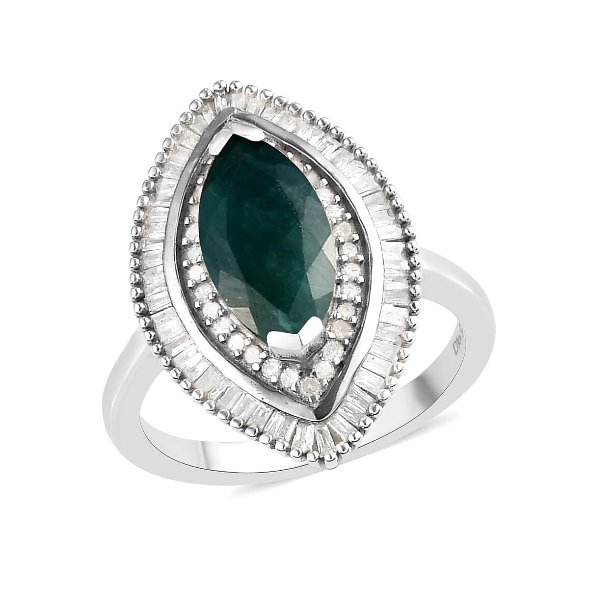 AAA Grandidierite and Diamond Double Halo Ring in Platinum Over Sterling Silver 2.40 ctw