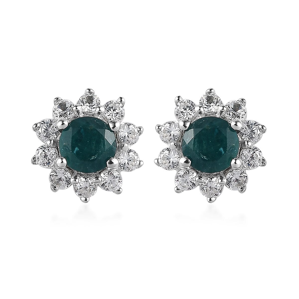 AAA Grandidierite and White Zircon Sunburst Stud Earrings in Platinum Over Sterling Silver 0.90 ctw