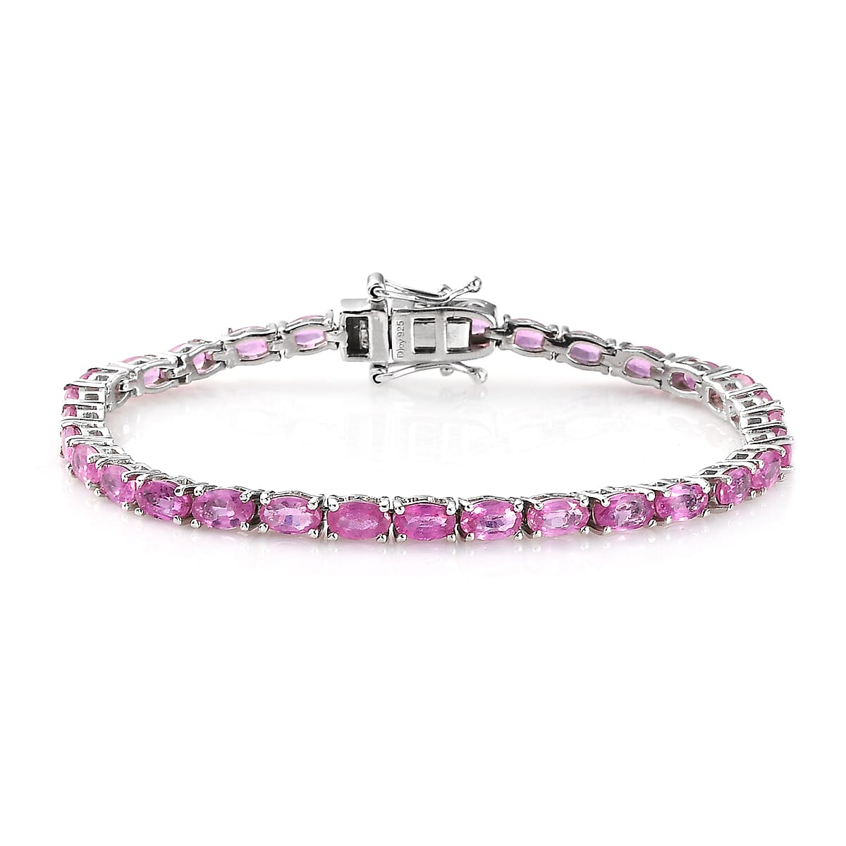 AAA Ilakaka Hot Pink Sapphire (FF) Tennis Bracelet in Platinum Over Sterling Silver (6.50 In) 10.15 ctw