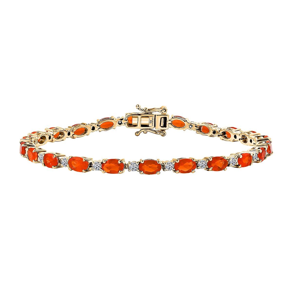 AAA Jalisco Fire Opal and Luxuriant Lab Grown Diamond I2 8.15 ctw Bracelet in 18K Vermeil Yellow Gold Over Sterling Silver (8.00 In)