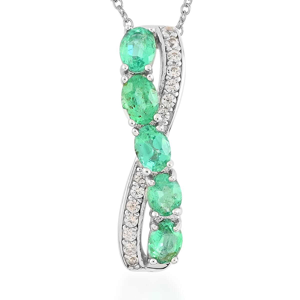 AAA Kagem Emerald and Natural White Zircon Infinity Pendant Necklace 18-19.5 Inches in Rhodium Over Sterling Silver 0.90 ctw