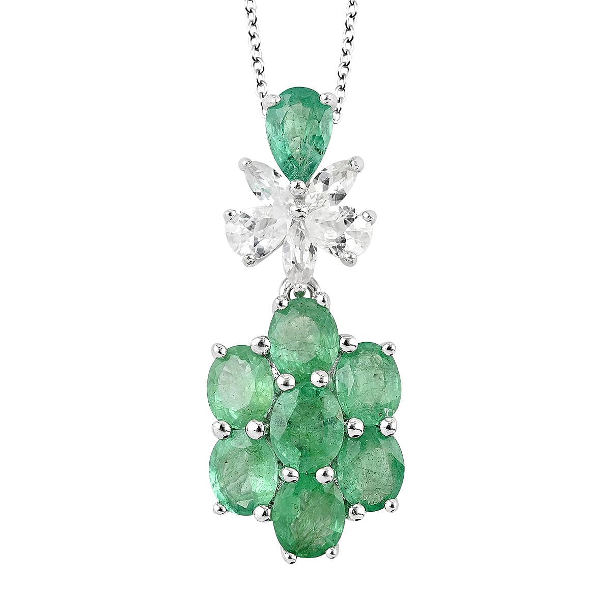AAA Kagem Emerald and White Zircon Pendant Necklace 18 Inches in Rhodium Over Sterling Silver 3.50 ctw