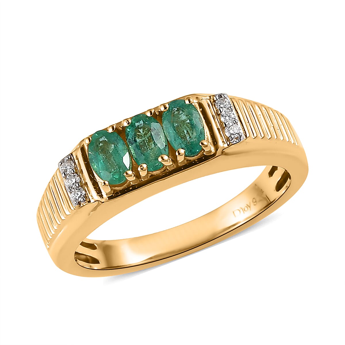 AAA Kagem Zambian Emerald and Moissanite Men's Ring in Vermeil Yellow Gold Over Sterling Silver (Size 10.0) 0.75 ctw