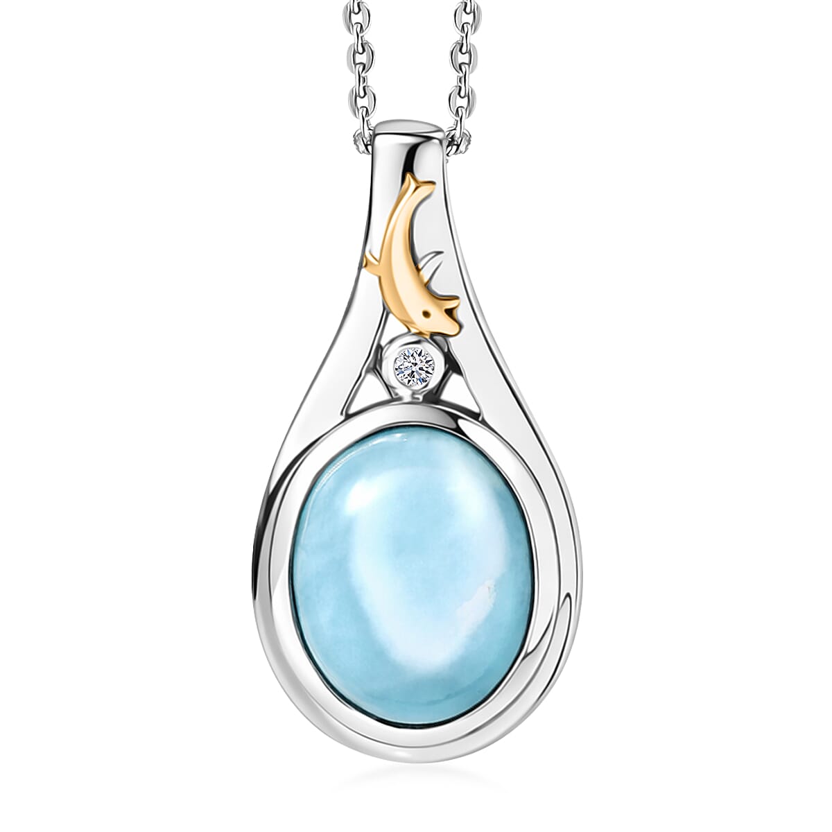 Enhance your style with this AAA larimar and lab-grown diamond pendant necklace in 925 sterling silver. This elegant fashion pendant necklace showcases serene blue hues accented by sparkling G-H SI lab-grown diamonds. Finished in 18K vermeil and rhodium, it offers luminous contrast and refined elegance.